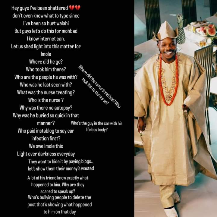 “Nothin makes him happy no more, even after seeing his baby he became more worried, he’s now a family man he doesn’t want anything to happen to us… was supposed to collect my baby’s passport yesterday sO We could process Our traveling, he always say to me…Wunmi pls go for my baby sake, I wouldn’t want this people to harm you and him it will break me. you just go, let me face them myself, llerioluwa rest in peace.. you really need that peace.”